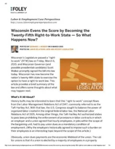 Wisconsin Evens the Score by Becoming the Twenty-Fifth Right-to-Work State – So What Happens Now?